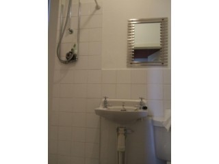 - Showerroom with shower, wc & sink. Glass shelving unit. New lino flooring.