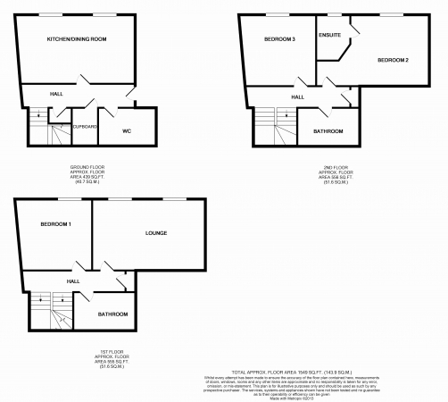 Second Floor: Master bedroom with en suite, double bedroom and